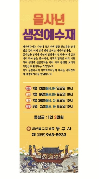 을사년 생전예수재를 다음과 같이 봉행하고자 합니다